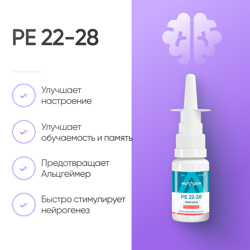 Восстановление после инсульта: PE-22-28 может помочь в восстановлении после инсульта, так как он способствует нейрогенезу (росту новых нейронов) и может улучшить нейропластичность.